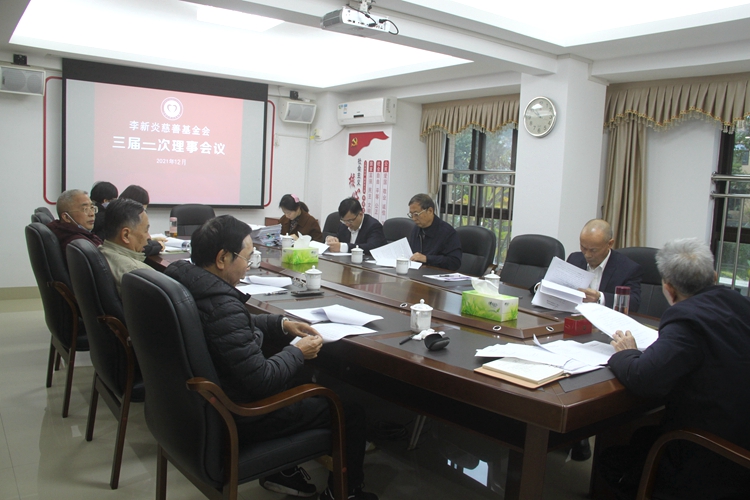 2021年12月21日上午,李新炎慈善基金会三届二次理事会在基金会会议室召开。